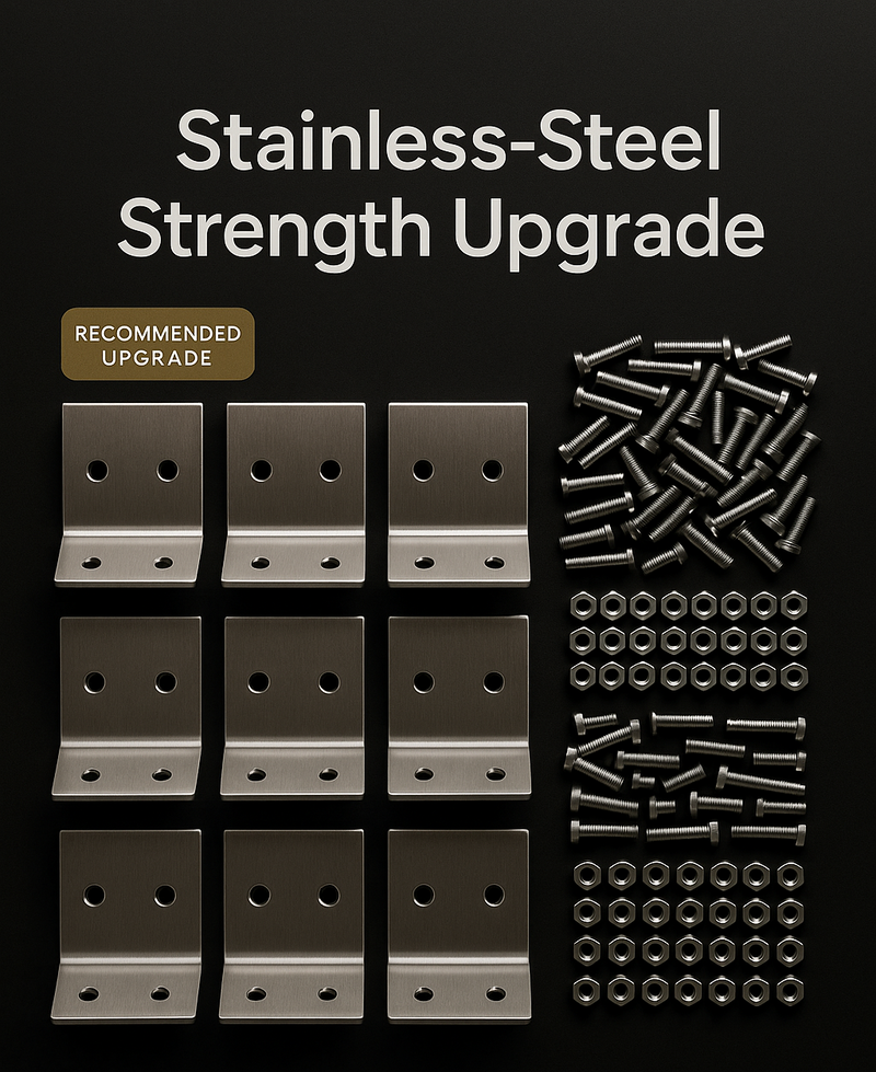 Simply use the provided Stainless Steel Upgrade Kit instead of the standard polycarbonate screws and brackets. If your dome is already built, remove the existing polycarbonate hardware and replace it with these stainless-steel components.